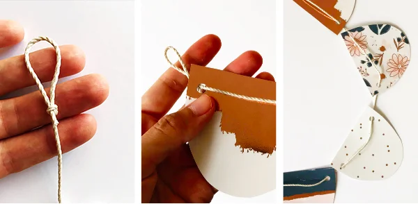 6) String the scallops together, pushing the string over the top of the paper (left to right) so the string shows. The rope adds extra visual texture!